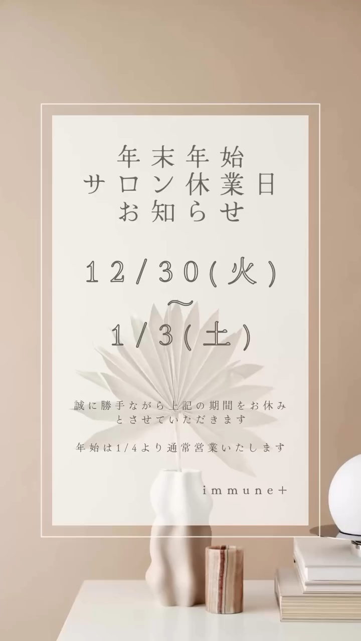 当サロンは誠に勝手ながら下記の期間を年末年始の休業とさせていただきます。