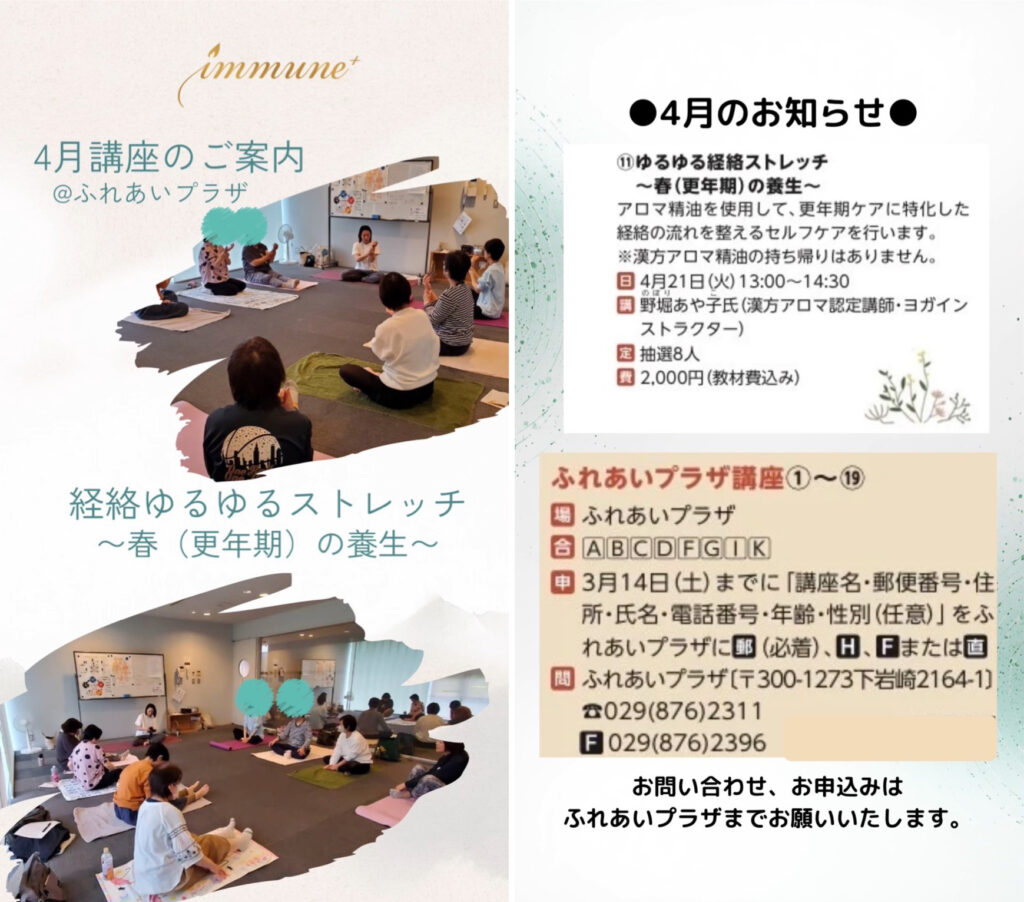 immune+では、毎月つくば市のふれあいプラザにて講座を開催しています。
